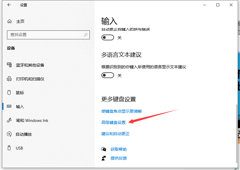 4、然后我们点击高级键盘设置,进入下一步设置。