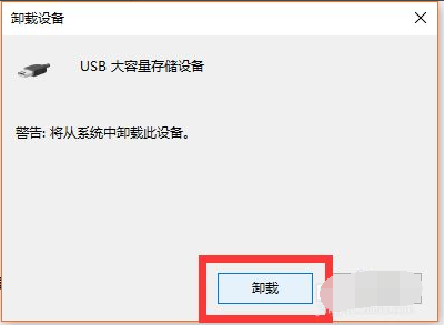 4、左击异正常显示的U盘项,选择“卸载”图标并点击“卸载”。