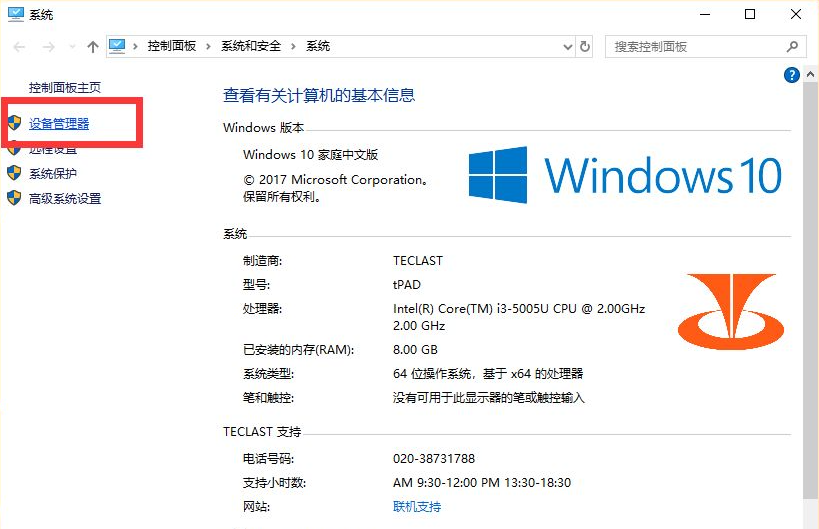 2、在打开的“系统”窗口中,点击“设备管理器”项。
