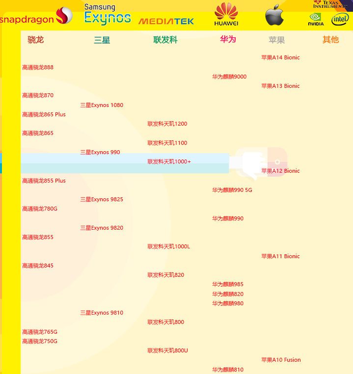从上图我们就可以很清楚的看到各种牌子不同型号的手机cpu的一个对比了,大家可以根据自己的需求再参考上面的天梯图来给自己选择购买,希望这篇文章对大家有帮助。