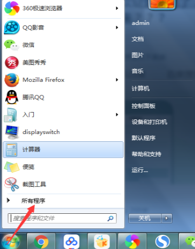1、点击桌面左下角“开始”菜单键,在弹出的程序列表中选择“所有程序”。