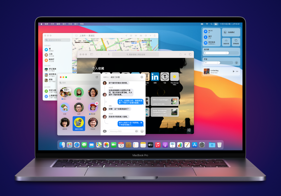 macOS Big Sur 将强大实力和优美外观的结合提升到一个崭新的高度。精心雕琢的全新设计,让你能淋漓尽致地感受 Mac 的魅力;Safari 浏览器迎来重大更新,待你饱览;地图 app 和信息 app 满载新功能,任你探索;更透明的隐私权限,保护也更周到。
