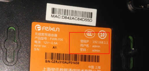 1.首先我们将买回来的路由器翻到备面的标签上,找到登录iP,在下方就能看见此路由器的用户名和密码。