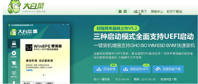 1.首先网上下载“大白菜”,并按照网上的U盘制作教程制作工具。