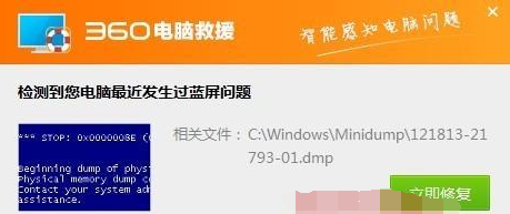 1、我们可以采用360安全卫士自带的电脑修复工具进行修复,发生蓝屏故障后,第一次启动会出现提示框,提示我们需要修复计算机,点击立即修复即可进入修复程序当中。