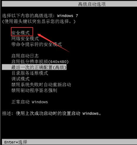 解决方法:重启长按f8键,进入“安全模式”,卸载不兼容的驱动或软件,重新启动电脑。