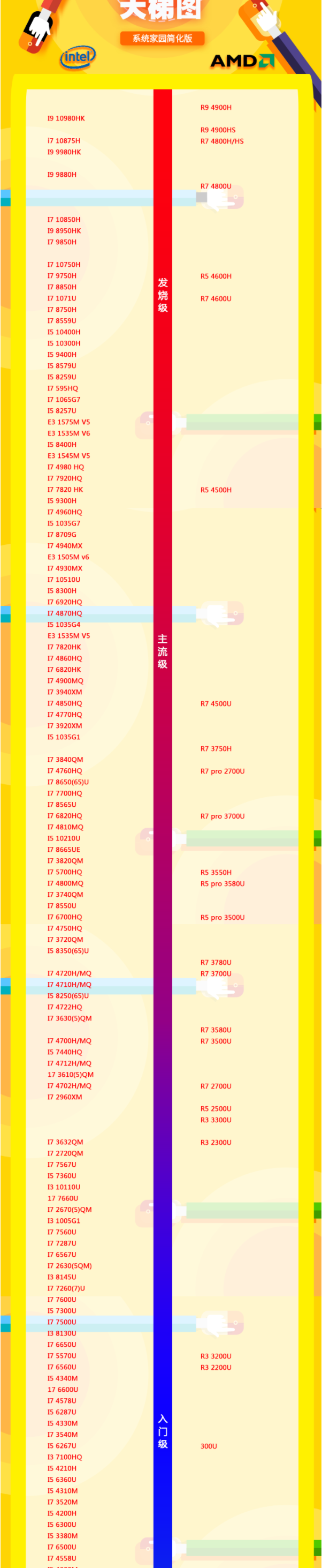 笔记本CPU排行天梯图2020: