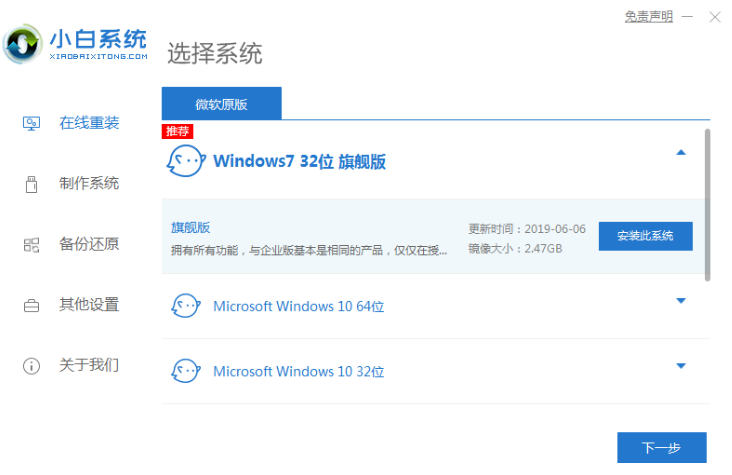 1.搜索下载小白一键重新装入系统,打开后点击联机重选系统。