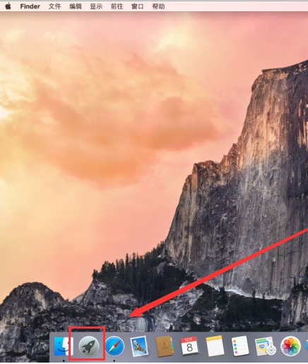 1、在苹果笔记本电脑的桌面当中,我们单击主桌面上的一个火箭标志进入该系统的开始菜单。