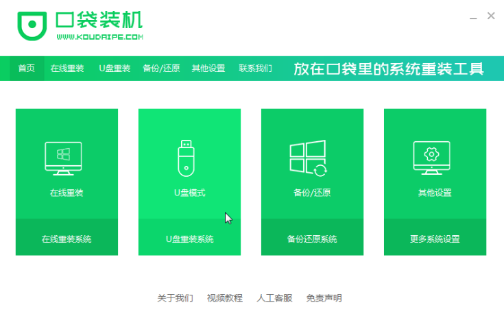 1.电脑下载口袋装机软件并打开。记得先关掉电脑上的杀毒软件。