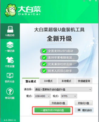 软件版本:大白菜U盘启动盘制作工具