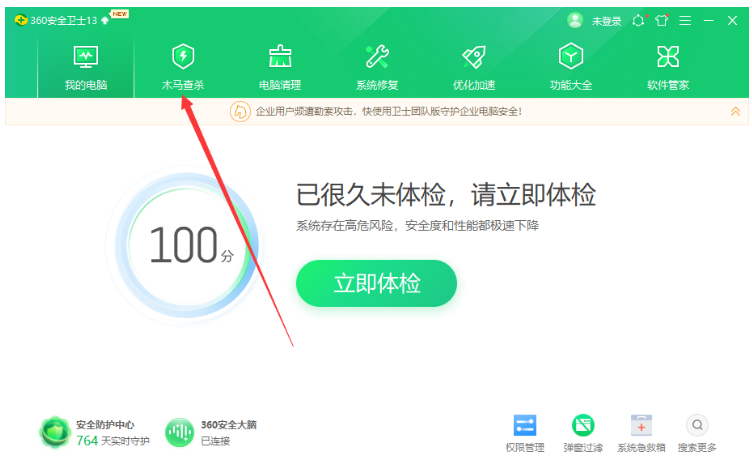 1、打开我们电脑上的360安全卫士,然后点击木马查杀。