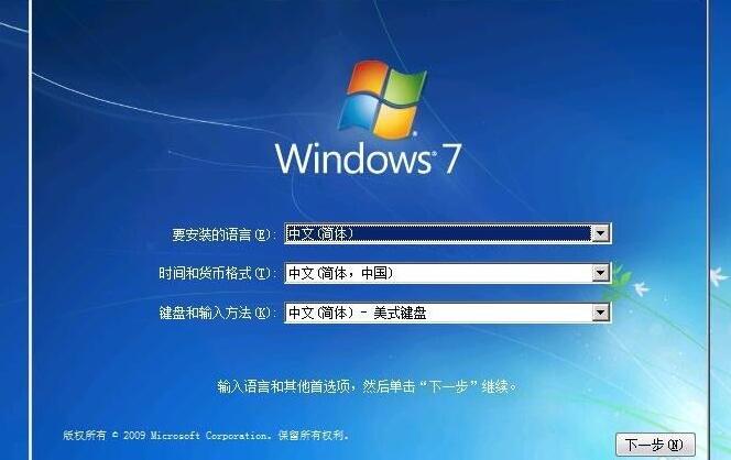 插入启动盘进u盘启动内开启win7安装程序;