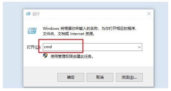 1、插入u盘启动盘进电脑,在电脑上按下win+r快捷键打开运行菜单,输入“cmd”回车确定打开命令提示符页面。
