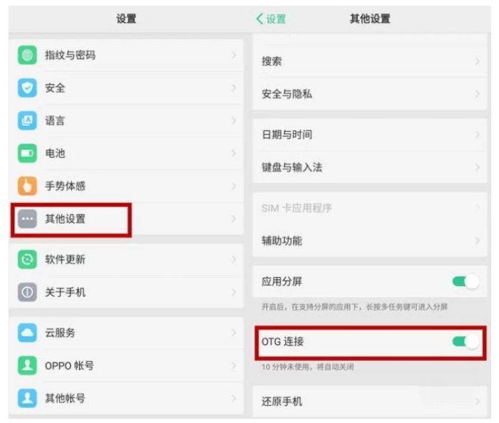 1、首先在手机中找到设置,在设置中把OTG链接选项打开。