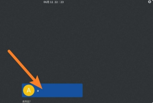 当我们需要进入linux系统界面时,首先打开电脑,开机之后会看到桌面上的登 录界面,输点击如图标示位置进入下一页面。
