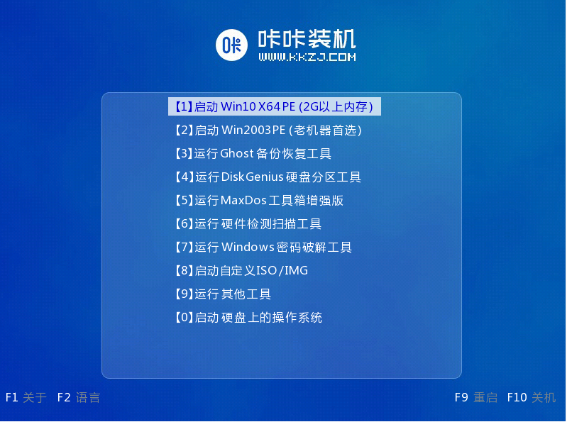6、将u盘插入要安装系统的电脑,开机按快捷键进入PE系统,选择第一项,回车。