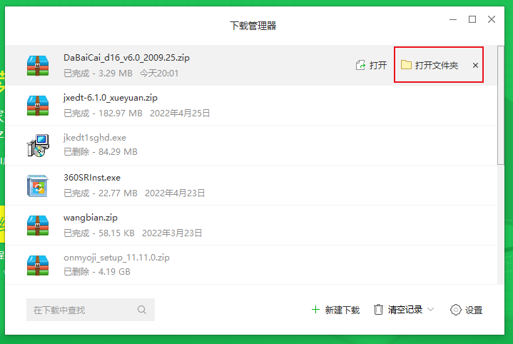 3. 下载完毕后,下载选择“打开文件夹”。然后右击选择“解压到文件夹”。