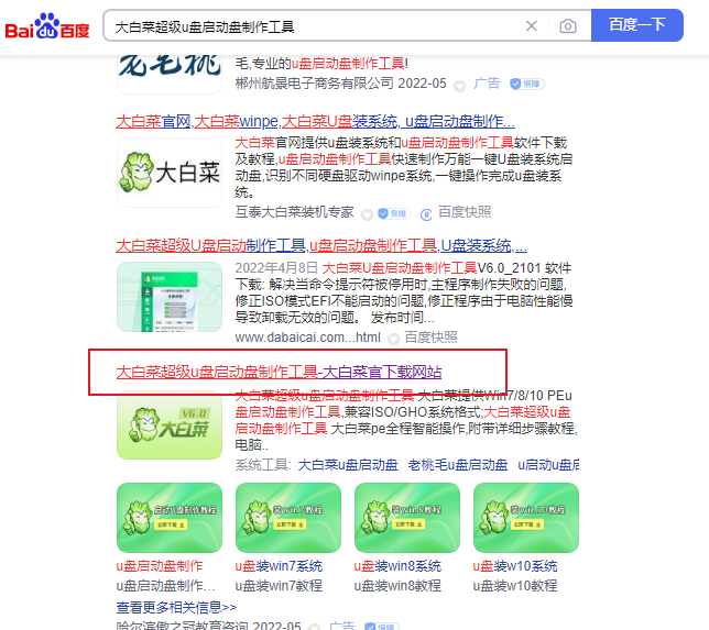 一、在浏览器下载大白菜超级u盘启动盘制作工具