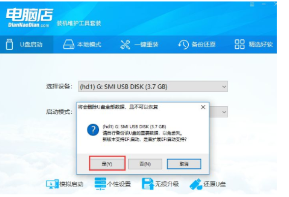 4.制作完成后点击“是”,进行模拟启动测试。