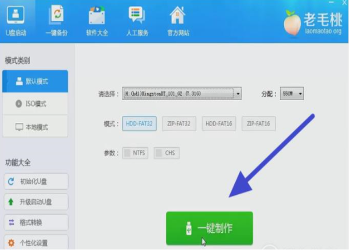 6、U盘格式化完成之后,点击一键制作,就可以开始制作U盘启动盘了。