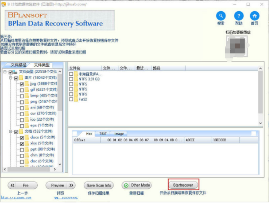 6、完成保存扫描信息后,点击“文件类型”。选择文件类型可以快速找回需要的数据,节省更多时间。然后点击“开始恢复”按钮。