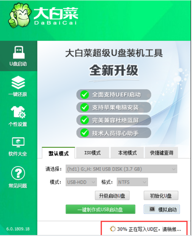 软件版本:大白菜超级U盘装机工具 v6.0.1905.1
