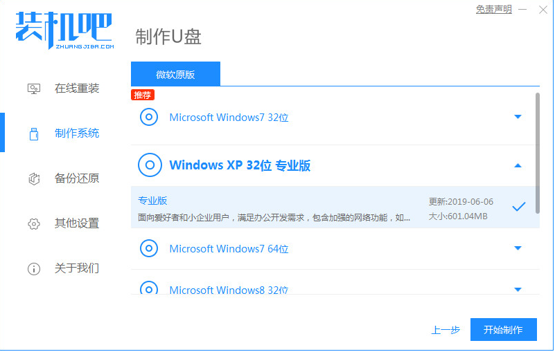 1、电脑下载装机吧一键重装系统软件。准备一个8GB以上的U盘。打开软件,选择制作系统,在制作U盘中选择您的U盘,其它参数默认直接开始制作即可