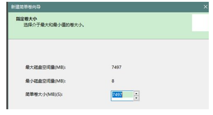 7、然后,如果没有特别需要,在“简单卷大小”和“分配以下驱动器号”这两步直接点击“下一步”,保持默认设置。