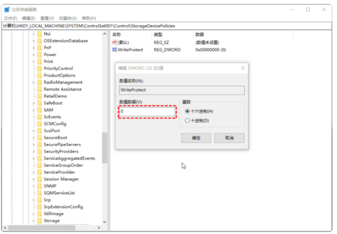 在右侧窗格上,双击WriteProtect或右键单击它,然后选择修改。在弹出窗口中,你可能会发现数值数据设置为1,这表示当前计算机已启用USB存储设备上的写保护。要禁用它,你需要将值从1更改为0,然后单击确定以应用更改。