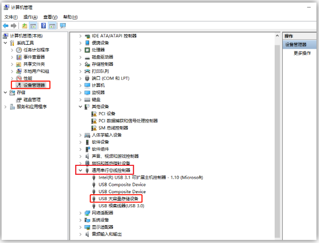 1、如果电脑没反应,但U盘驱动程序已经自动加载上了,可能出现了某些故障,所以显示不出来,。我们可以先将这个USB设备卸载。首先进入到「计算机管理」界面,点击「设备管理器」,找到「通用串行总线控制器」,双击「USB大容量存储设备」。