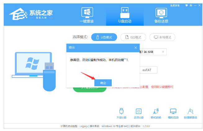 6、U盘制作完成后,工具会进行提示当前电脑的U盘启动快捷键,记住后点击确定。