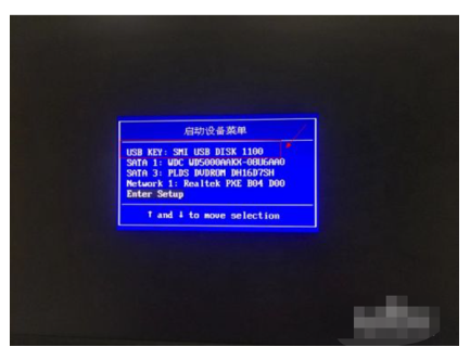 1、重启电脑,在出现开机画面时按下F12,随后会弹出“启动设备菜单窗口”,若插入了U盘启动盘,会自动显示usb key ,选中usb key并按回车,就可以进入U盘启动模式了。