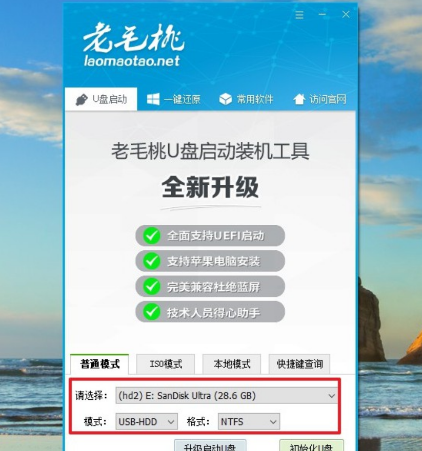 2、老毛桃u盘启动盘制作工具