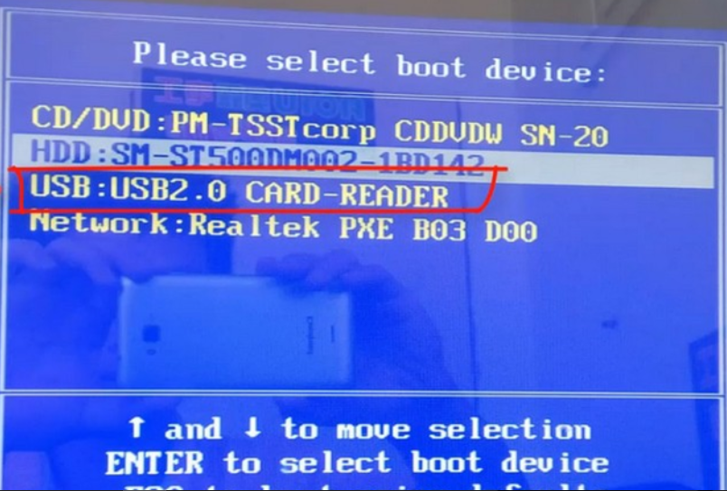 4.我们将u盘插入需要重新安装的电脑,将其电脑重启或开机启动并迅速断续地按下热键,进入快速启动菜单界面。
