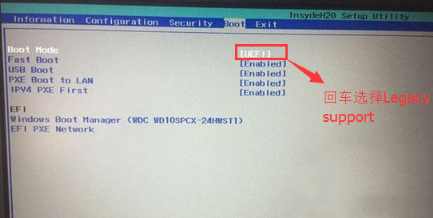 3、此时切换到【Boot】选项下,将【Boot Mode】改成【Legacy Support】。
