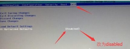 2、我们切换到【Exit】选项下,将【OS Optimized Defaults】设置为【Disabled】。