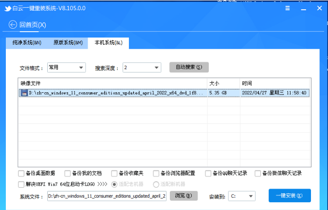14、切换到【本机系统】选项卡,第一步:选择准备好的系统映像文件(比如:Win11);第二步:选择系统安装【盘符】,默认C盘,电脑有双硬盘的情况,一定要选择正确的盘符;第三步:执行【一键安装】,即可开始安装;