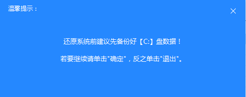 15、还原系统前建议先备份好C:盘数据!若要继续请单击“确定”,反之单击“退出”;
