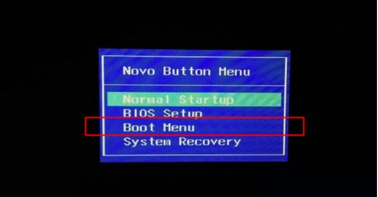 2、此时开机并调出novo button menu,按向下的方向键选择Boot Menu并回车。