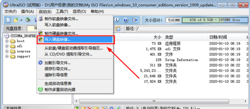 3.接着我们将U盘插入电脑usb接口,点击启动,点击写入硬盘映像。