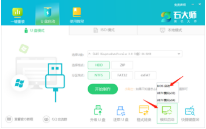 1、直接去电脑上面下载石大师软件,直接安装电脑上面,进入页面,选择U盘启动。