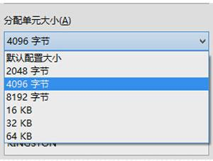 3、在分配单元大小里选择4096字节的。