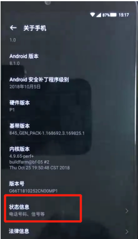 2.点击关于手机,点击状态信息