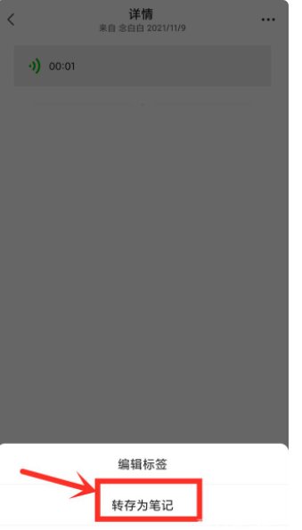 3、直接点击消息进去页面,再点击上方三个小点,将这条消息【转为笔记】。