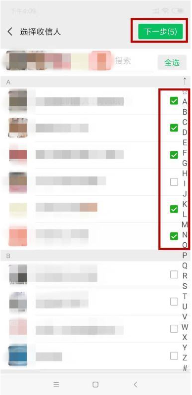 7.选择要群发的好友,然后单击“下一步”。