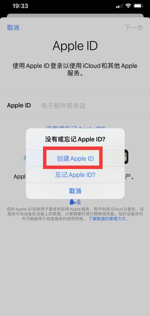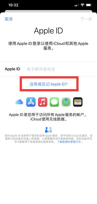 2、点击没有或忘记Apple ID