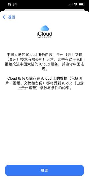 8、接着进入iCloud页面,点击下方的“继续”按钮。
