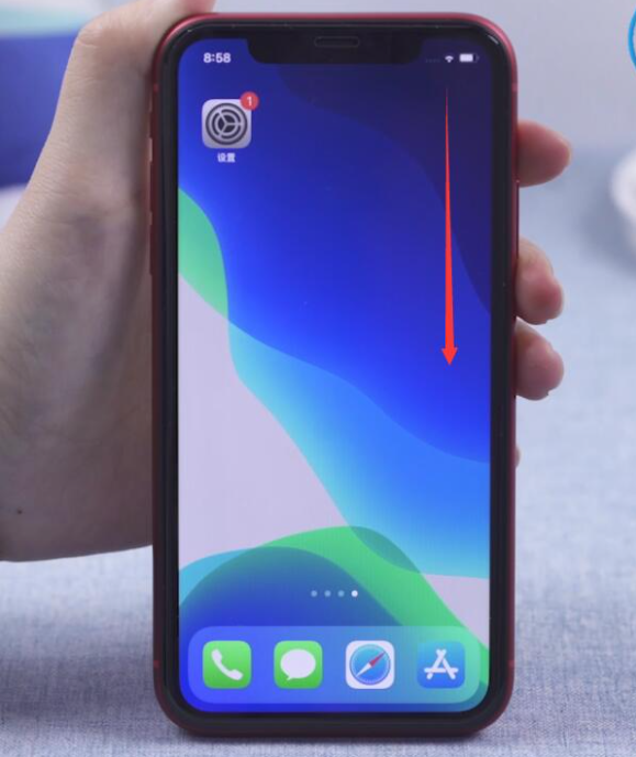 从手机右侧顶部下滑打开控制中心即可点击手电筒打开。