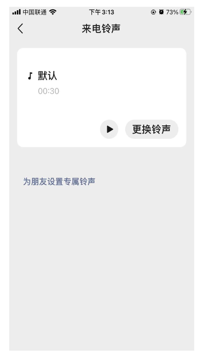 4、在“来电铃声”页面中点击“更换铃声”即可设置个性化铃声了,还可以为朋友设置专属铃声哦。